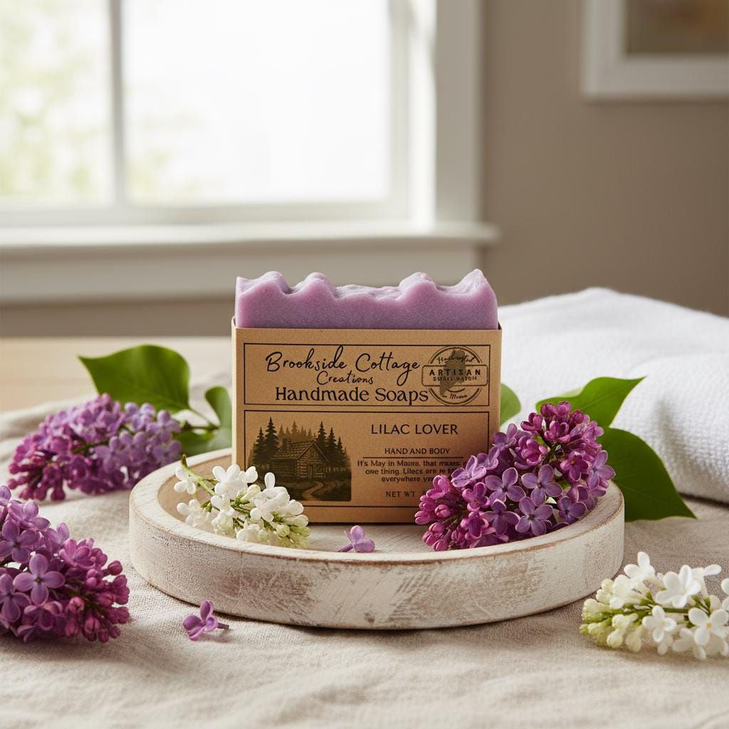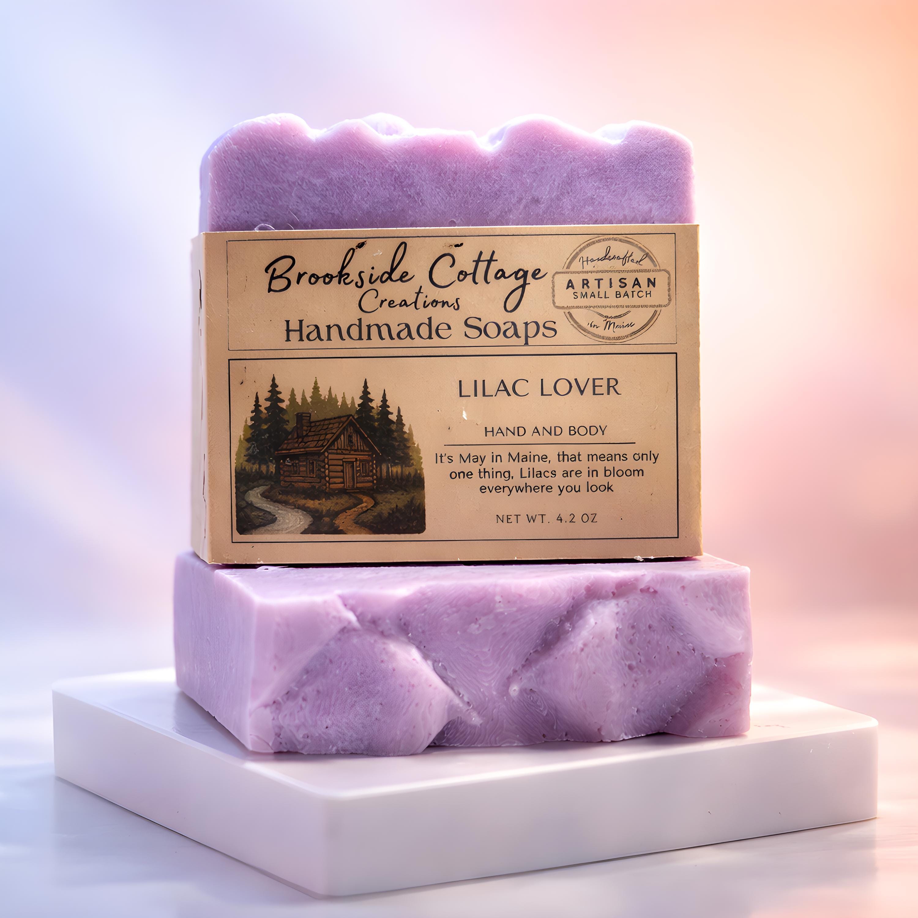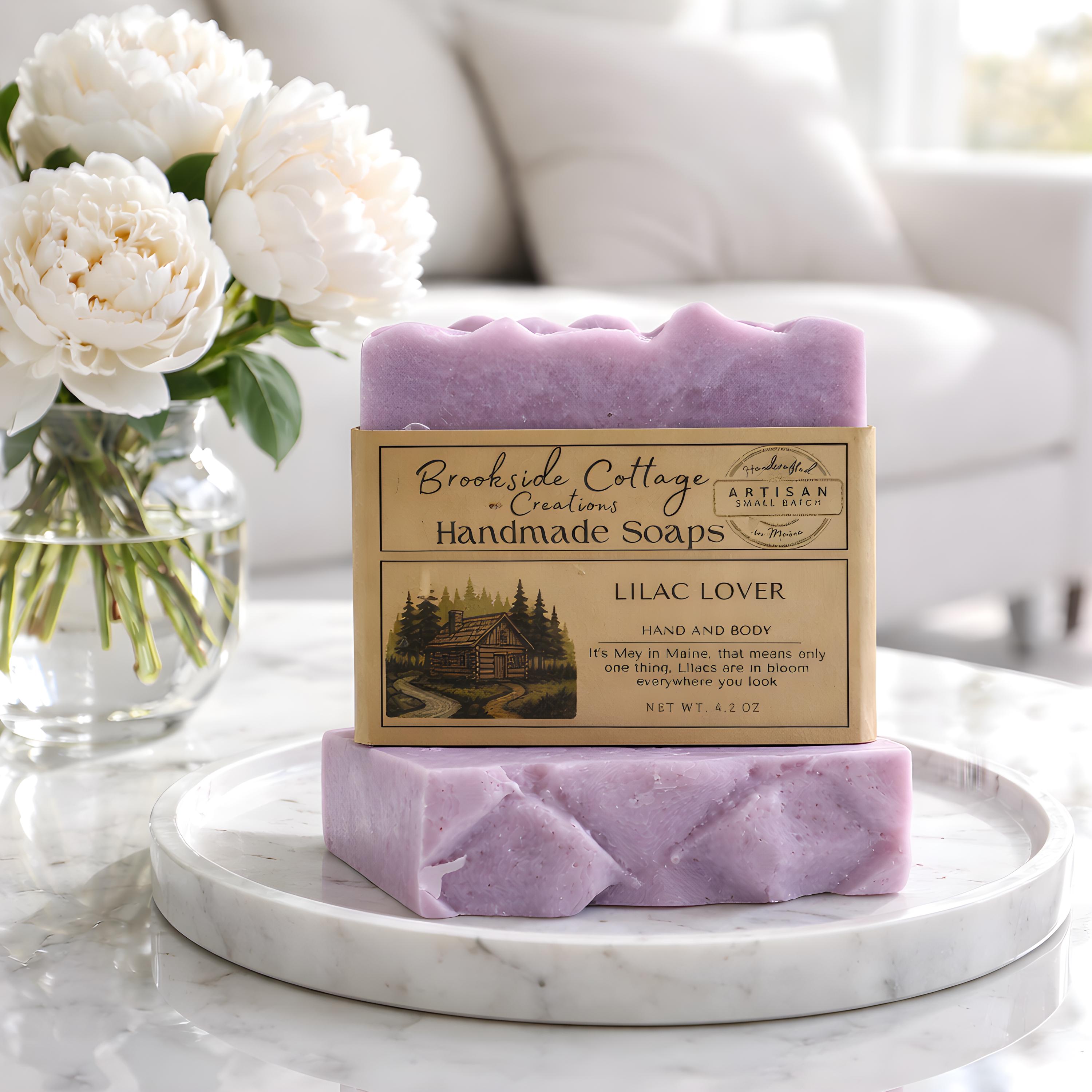 This handmade lilac soap bar captures the nostalgic scent of spring lilacs in bloom. Crafted in Maine for a soft, floral cleanse.