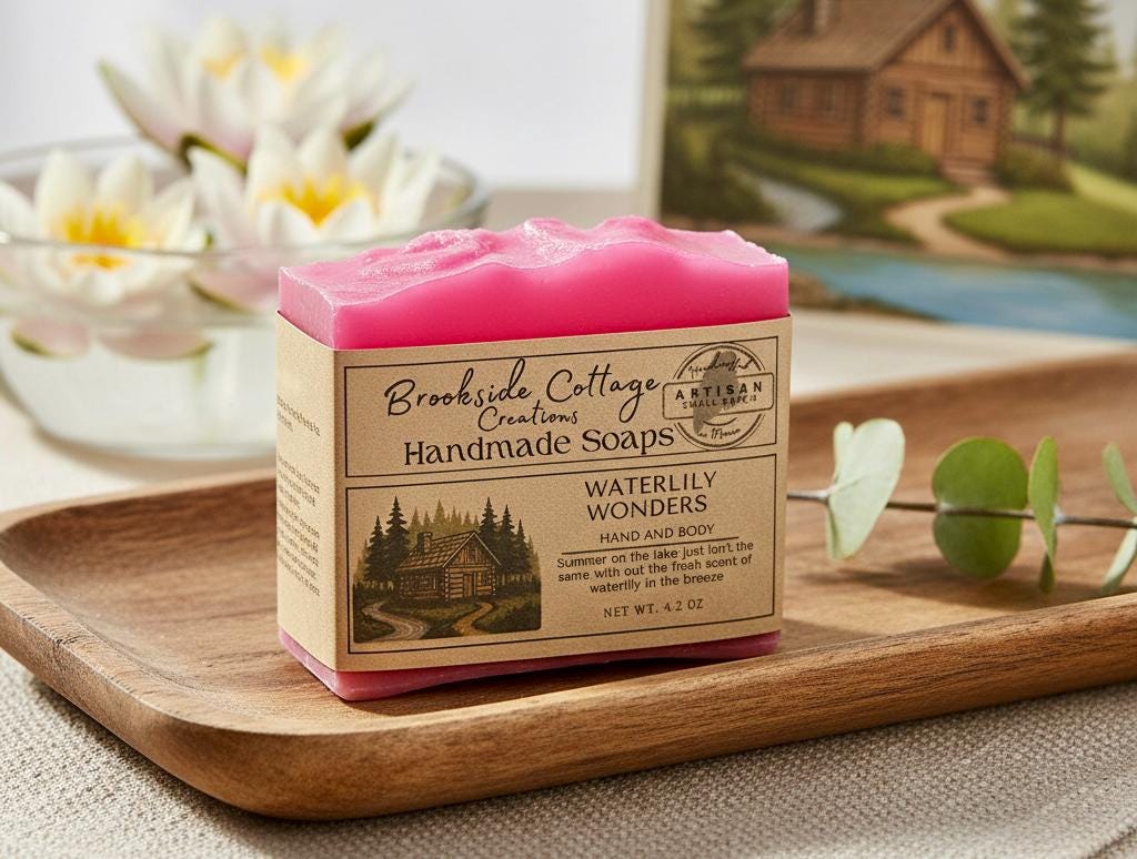 Experience the calming essence of nature with our Waterlily Wonders Handmade Floral Cold Process Soap Bar. Crafted in small batches in Maine, this artisan soap is designed to bring a touch of serenity to your daily routine. The fresh, light floral scent is inspired by peaceful mornings by a pond, where delicate waterlilies bloom amidst dewy freshness. Its airy aroma is both calming and beautifully understated, making it perfect for everyday use or gifting to loved ones.