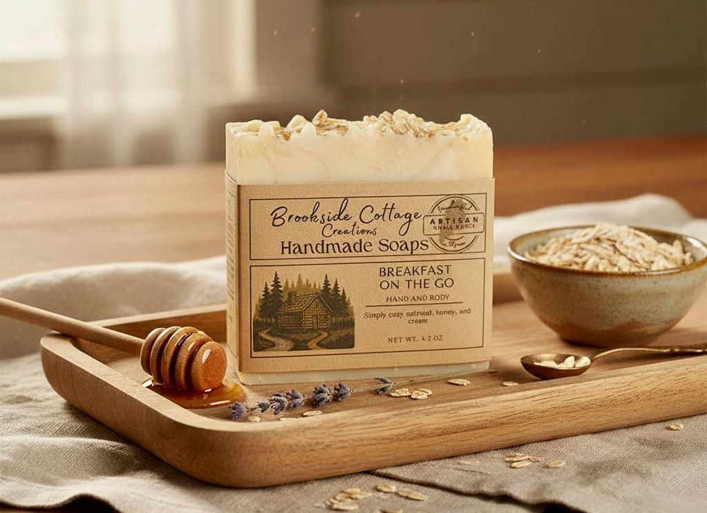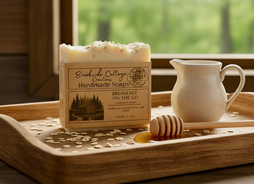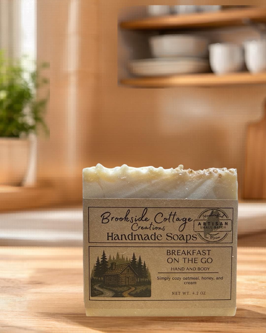 This cozy bar, named Breakfast on the Go, features soothing oats that gently buff and calm your skin while honey adds a natural touch of sweetness. The creamy lather revitalizes your senses and leaves you feeling refreshed—like a fresh start to your day. Made with love and care in Maine using traditional cold process techniques, this artisan soap is a testament to quality and craftsmanship.