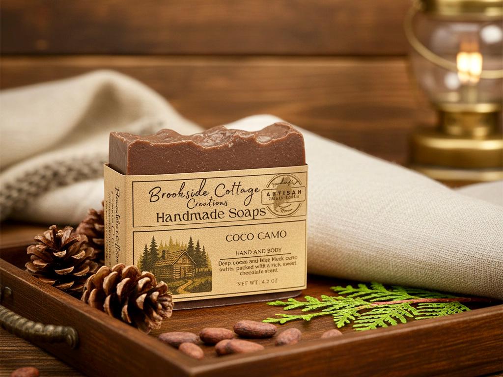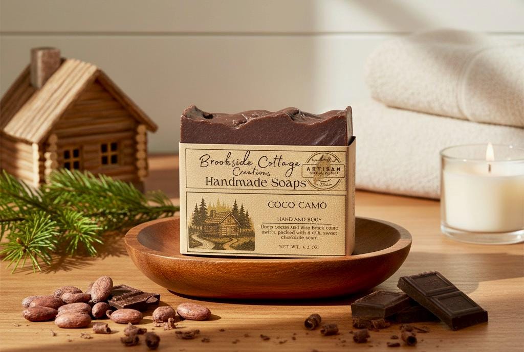 Indulge in the rich, decadent scent of chocolate with our Handmade Cocoa Camo Cold Process Soap Bar. Perfect for chocolate lovers and those who appreciate artisanal skincare, this luxurious soap combines a bold dark design with a sweet cocoa aroma that is smooth, confident, and impossible to resist.