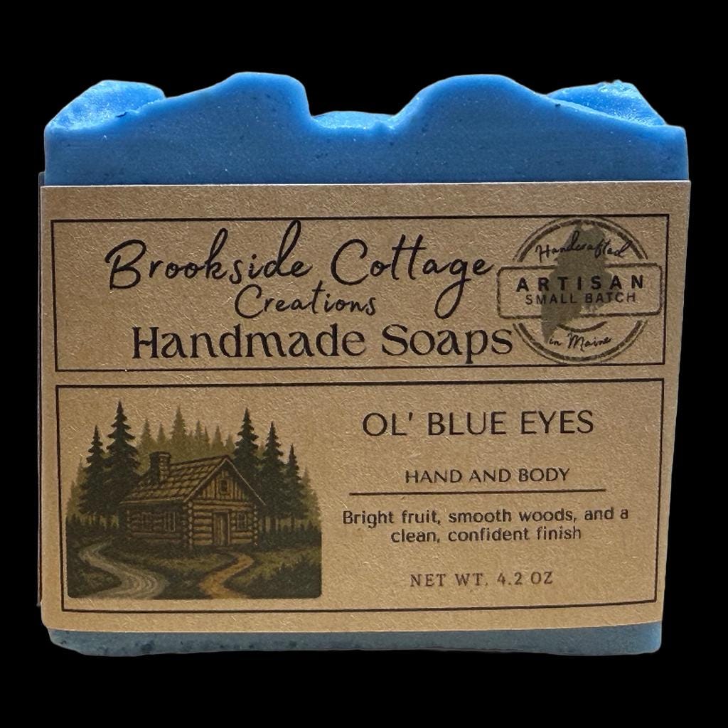 Ol' Blue Eyes is a handmade cold process soap bar with bright fruit and warm spice notes for a bold, classic scent. Crafted in Maine in small batches with a rich, creamy lather.