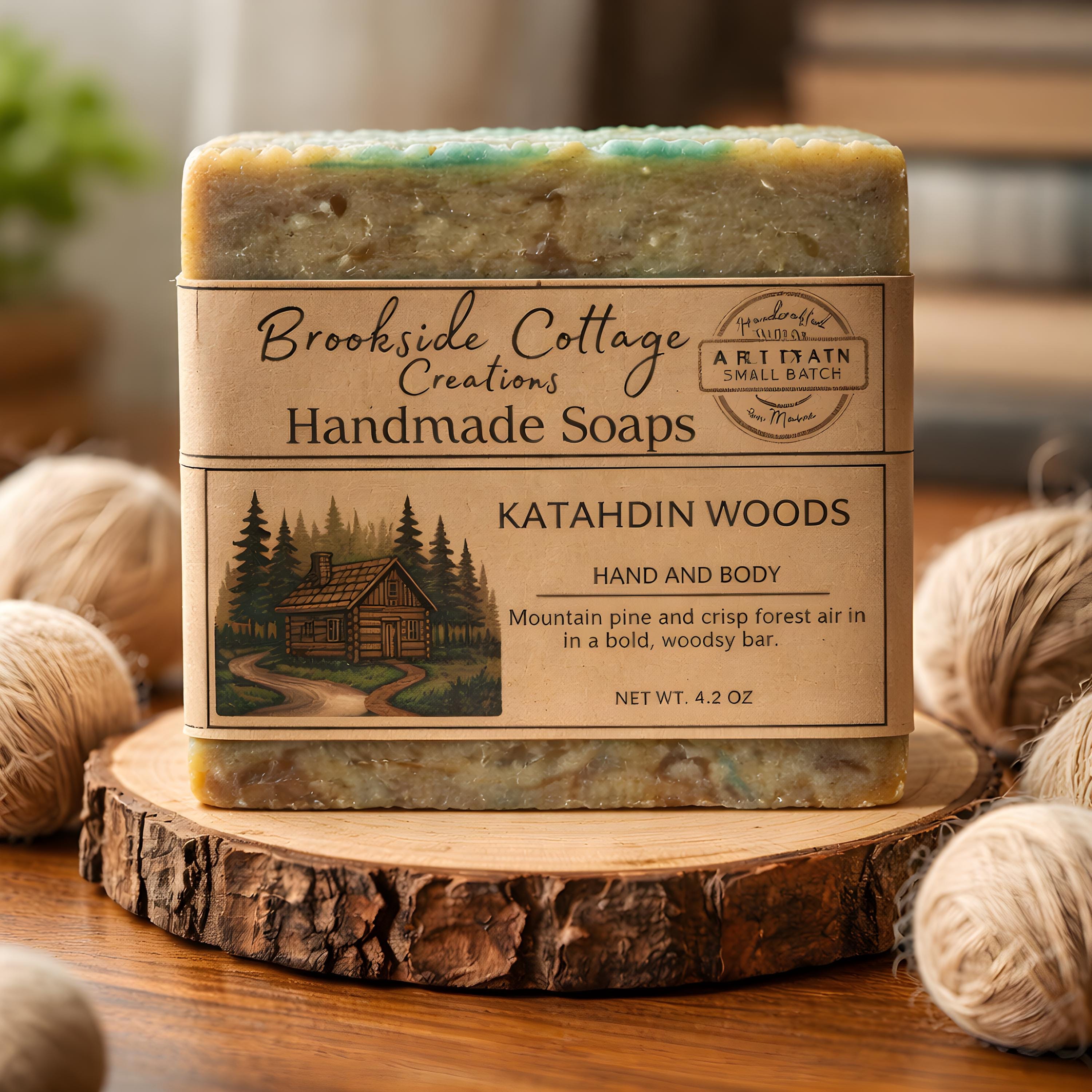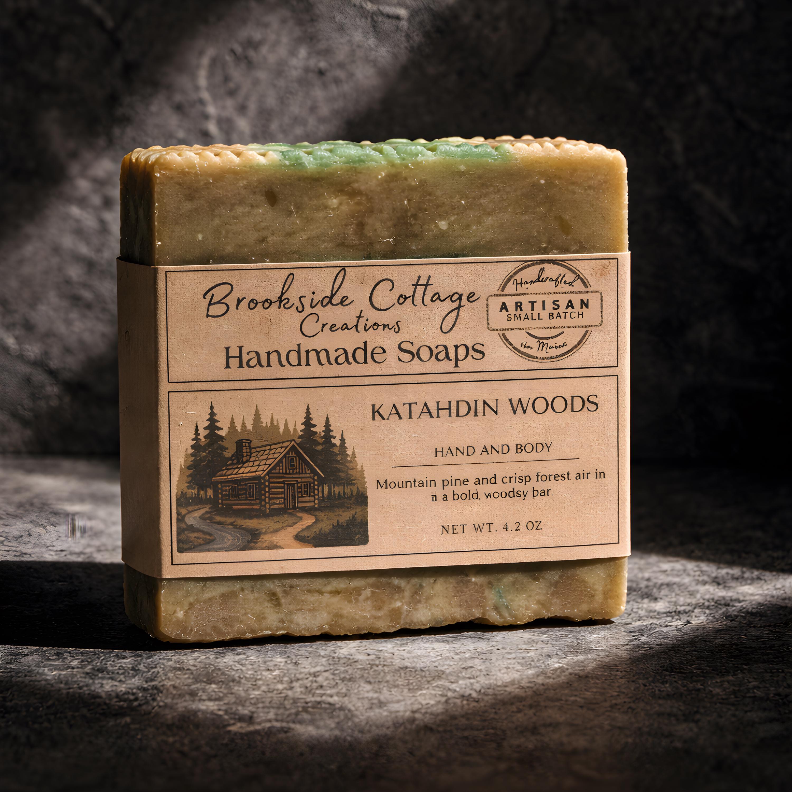 Katahdin Woods is a deep breath of Maine wilderness in soap form, crisp air, tall pines, and that clean mountain calm you feel the moment you step onto the trail.
