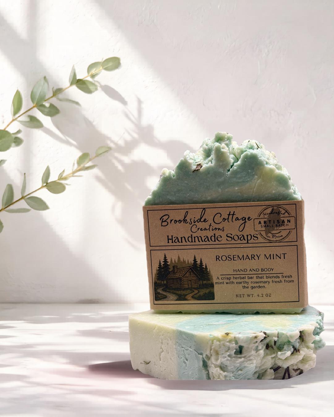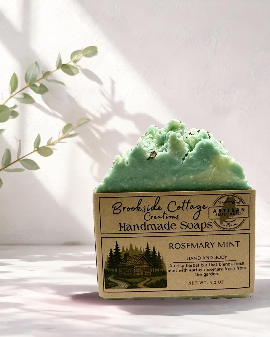 This handmade Rosemary and Mint soap bar is crafted in small batches in Maine with a rich, creamy lather and a sweet floral scent. Perfect for gifting or adding a cozy, dessert-inspired touch to your daily routine.